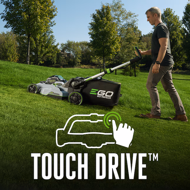 The Touch Drive™ system simplifies self-propelled operation by enabling fingertip control over speed, reducing the need for traditional speed levers and improving overall mowing comfort.