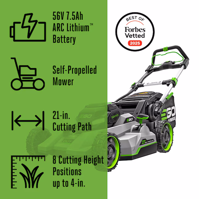 Powered by a high-efficiency brushless motor and a 56V ARC Lithium™ battery, this mower delivers performance comparable to gas-powered models, but operates quietly and cleanly. With a 10.0Ah battery, it can provide up to 75 minutes of runtime, allowing homeowners to complete full lawn jobs without frequent recharging.
